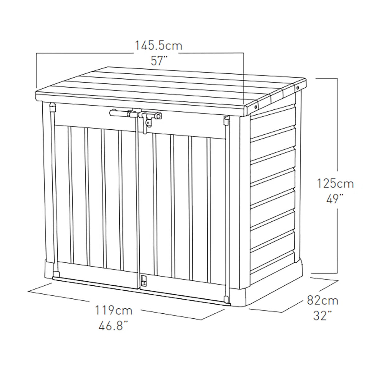 Functionality Suitable for two 240L wheelie bins, tools, or furniture.